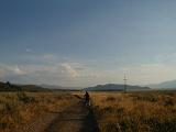 Here's a handlebar level view as I ride down the gravel road. I'm going pretty fast now, praying not to lose my ride cuz I'm only holding on with one hand. Fortunately I survive.