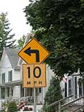 Here's the sign marking the up and coming curve in the street. We used to use it as a target when throwing snowballs.