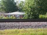 The park is located right next to three railroad tracks. It must really suck to live in that house across the tracks.