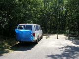 I spend the morning travel writing. As the sun moves across my campsite I'm forced to move the van to the other side to stay in the shade. During my stay I'll have to repeat this routine every day.