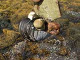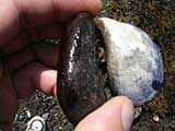 Sprinkled far and wide along the beach these little guys are all tucked up in their shells. I can't seem to focus the damn camera in the subject matter however, but you get the general idea.