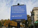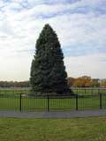 My next stop is The White House, home of President George W. Bush. On the way, I walk along the perimeter of a landmark called the Ellipse, which is also known as President's Park. They even have a visitors center for it. The Ellipse is located just south of The White House and is quite large. I suppose they use it for ceremonies and the like. Hey! That's strange, there's a huge evergreen tree nearby, standing all alone and isolated. I wonder what it could be?