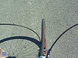 Sitting atop the bike, I assess the damage. Yikes! This one has got to be replaced. Before I replace the rim, I have a little fun and test ride the bike.