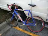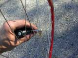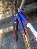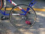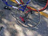 Okay, back to work. My next bike maintenance victim is my road bike. Somehow the front rim got bent. I think I may have bent it when I backed into a guardrail back in Maine, ya think?