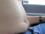 After jumping into the van, I look down and realize something. I'm getting fat! Just look at how that roll is spilling over the top of my pants. Yes, for as skinny as I am, I'm getting fat. I think I'd better get a healthy breakfast in me, no?