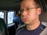 I'm ready to start my road trip, and as you can see, I've got my serious driving face on this morning. Or is my seriousness caused by the slight hangover from last evening's drinking and partying? In any event, the fact of the matter is there are 360 long, boring miles between New Orleans and Houston and I'll need to do my best to prepare for it. I think I'd better get some coffee in me to keep me from dozing off at the wheel.