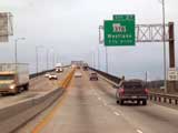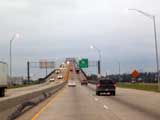 A bridge takes me up and over Lake Charles.