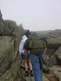Following Bill's lead, we keep pushing along. The wind is picking up now, as illustrated by this next video (1.2 MB). It contains exciting live footage of Bill in hiking action. Here's another (1.5 MB), in this one I give a little commentary.