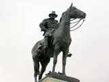 During battle, as illustrated by the Memorial, we see General Grant and his trusty horse. He is calm and composed, as reportedly the nature of his demeanor; supposedly he was once seen whittling on a stick while watching the warfront play out before him. As you can see, Cincinnati has both front legs planted firmly on the ground, meaning Grant was neither killed (both legs risen) nor injured (one leg risen) in battle. Rather, he died of throat cancer in 1885 at the age of 63 after his run as President and partaking on two year world tour.