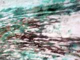 The marble near the bronze statues is quite colorful. I think the oxidation of the bronze has resulted in some kind of chemical spillover and the effect has turned the marble both green and dark gray. The pictures here exaggerate the coloration just a tad.