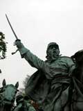 As close as I can get without climbing on the Memorial, I attempt to capture the fine detail of the sculpture. The men are not only riding their horses, two are carrying swords, one is holding a flag, and another is sounding a bugle.