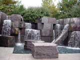This room looks decidedly different from the first two. Large granite blocks are scattered about and there's a loud waterfall whose waters run rough and tumble down a disjointed rock face. Yes indeed, we have entered into the dark realms of World War II. WWII dominated FDR's third term, effectively pulling America into the foray with the tragic happenstance that took place on December 7, 1941, Pearl Harbor.