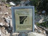 I start climbing up the boulder field to the tower wall until I happen upon this sign. I think it's telling me it's dangerous to proceeded for I risk being hit by a falling climber? So what does registering get you? Training in how to dodge falling bodies?
