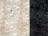 Work recommenced on the obelisk in 1880. The Maryland marble that was secured for the remainder of the construction was acquired from the same quarry, as well as from the same vein. Unfortunately, the new marble was taken from a much lower stratum because of ongoing quarrying during the 25 years of construction inactivity. As a result, a difference in rock color was realized, as evidenced by the really wide ring that runs from the 150 feet mark on up a good third of the monument. Oops! The first photo does a good job of pointing that out.