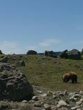 With the exit of the cherry sprinkling owner, they release the bears into the arena. Here's Sheena foraging for cherries.