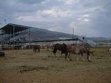 On the way to my seat I pass by, then climb up and over the animal stock yards. I'm really impressed by all the animals they have on hand. I also notice it is very clean, they do a great job of keeping the manure levels down and hence the bad smell to a minimum. The animals all look happy and relaxed.