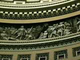 Just below the 36 windows that encircle the dome I find a dramatic frescoed frieze. It depicts American history, from the landing of Columbus to the birth of aviation. All told there are 19 individual scenes that are specially painted to give the illusion of being sculpted relief.
