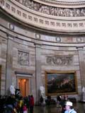 High overhead I see this dramatic fresco. Here's a better picture of it. The painting features George Washington, who's draped in a purple robe, and is part of a circle of 15 characters; Liberty, Victory, and 13 women who represent the original thirteen colonies. All are surrounded by scenes containing various mythical characters.
