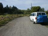After the bear exhibit I make my way to Yellowstone on the off-beaten trail. A 20-mile dirt road detour from the Interestate proves to be a good escape from the boring highway. Along the dusty road I document a variety of entrance arches to private homes, make friends with two horses, and get an eye full of some pretty panoramas from atop a hill, having first tip-toed my way through a minefield of horse droppings on the way up. I also have a revelation of sorts about eating, which comes to me as I munch on a chicken sandwich while enjoying a pastoral setting through the van's double-doors.