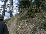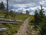 At the viewpoint I meet Brian. Turns out Brian is from Portland, Maine (I'm from Portland, Oregon) and he is on a cross-country trip with bike in tow as well. We both think this is a funny coincidence. He invites me to hike with him so we continue on up the trail together.